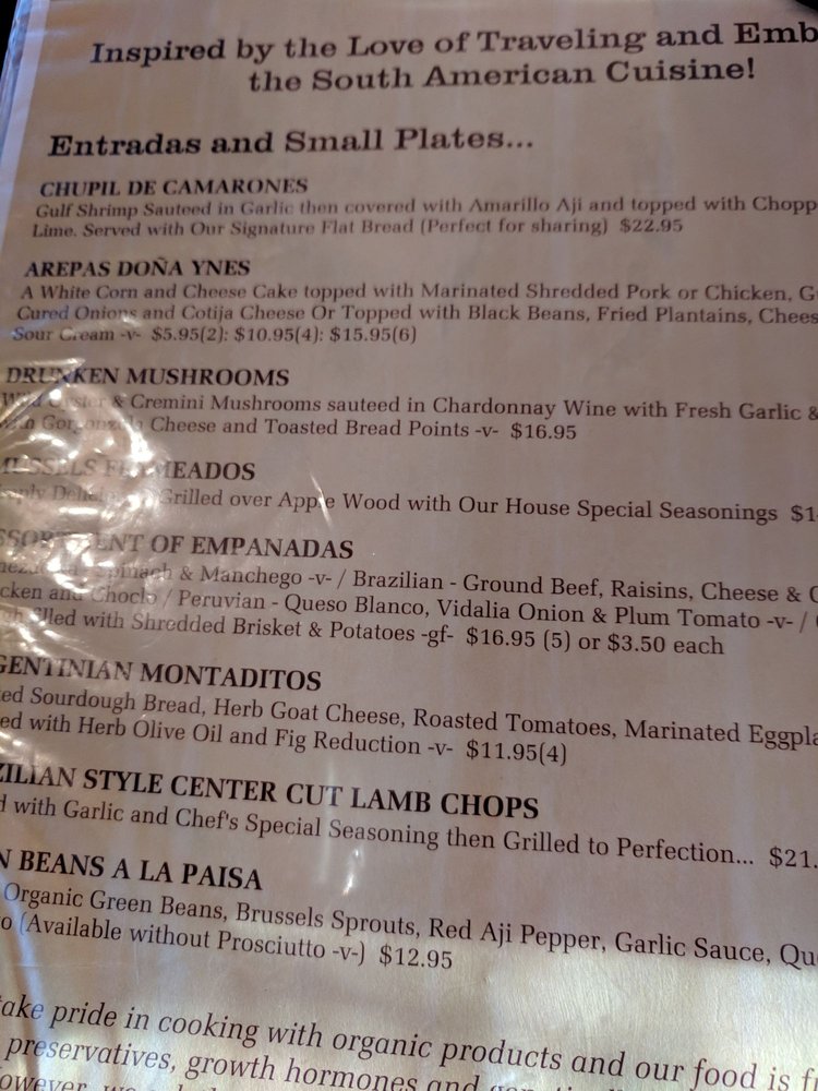 Colombian: Shredded Beef Brisket and Yukon Gold Potatoes, Brazilian: Grass Fed Grounded Beef, Raisins, Cheese & Olives, Argentinian: Serrano Ham and Queso, Venezuelan: Spinach and Manchego